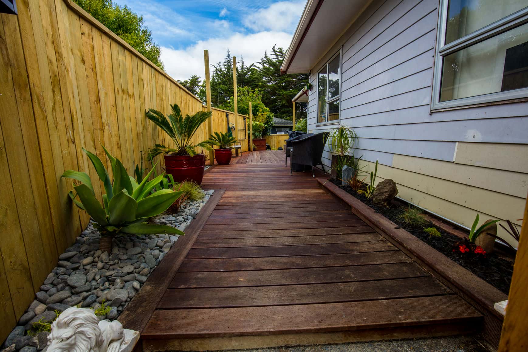 Bespoke Landscaping: The landscaping was tailored to blend seamlessly with the deck and canopy. Through careful selection of plants and design elements, we created a harmonious environment that invites tranquillity.